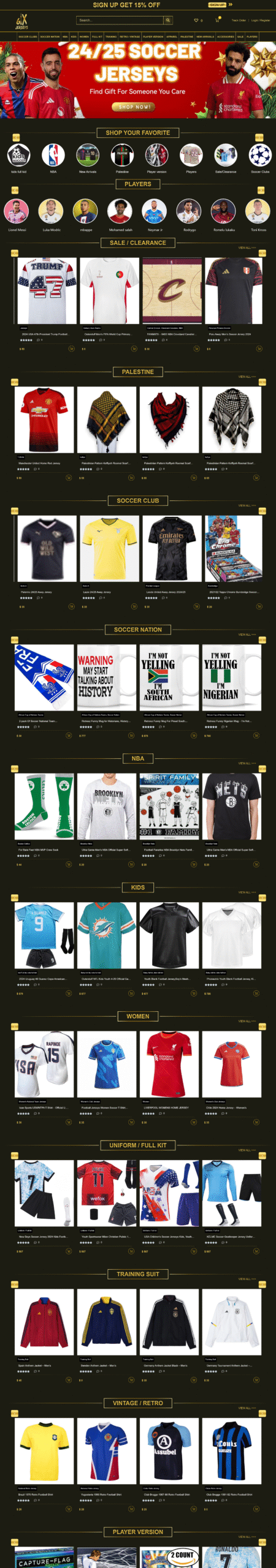 Product Catalog: Extensive range of jerseys, including NBA, NFL, NHL, MLB, and international soccer teams.