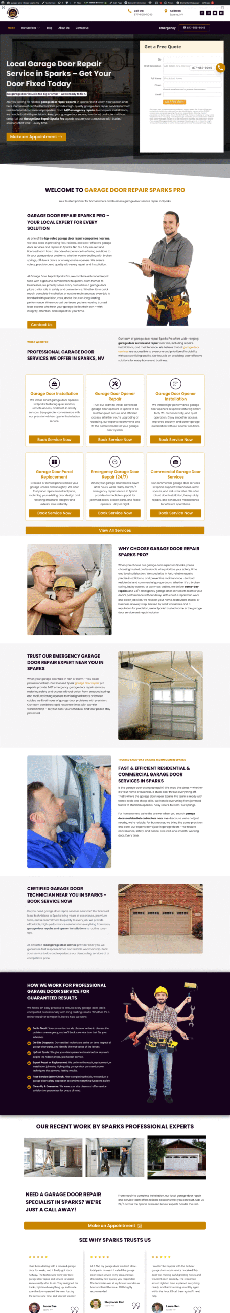 Garage Door Repair Sparks Pro is a professional garage door repair and installation company based in Sparks, Nevada. The website was designed to focus on local SEO, clear service communication, and fast user inquiry, aiming to drive leads and establish local authority.